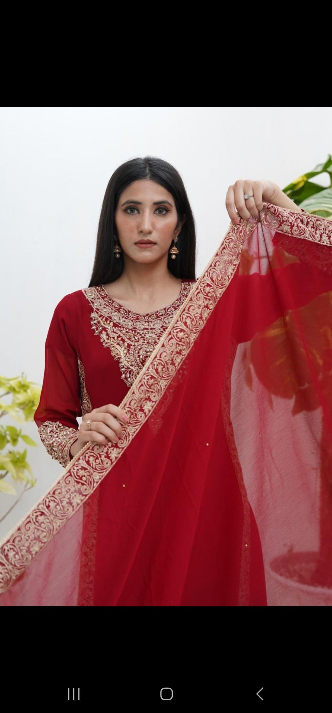 Pakistani Beautiful Three Piece Dress Chiffon Dupatta Material Which Is Chiffon Hand Work.