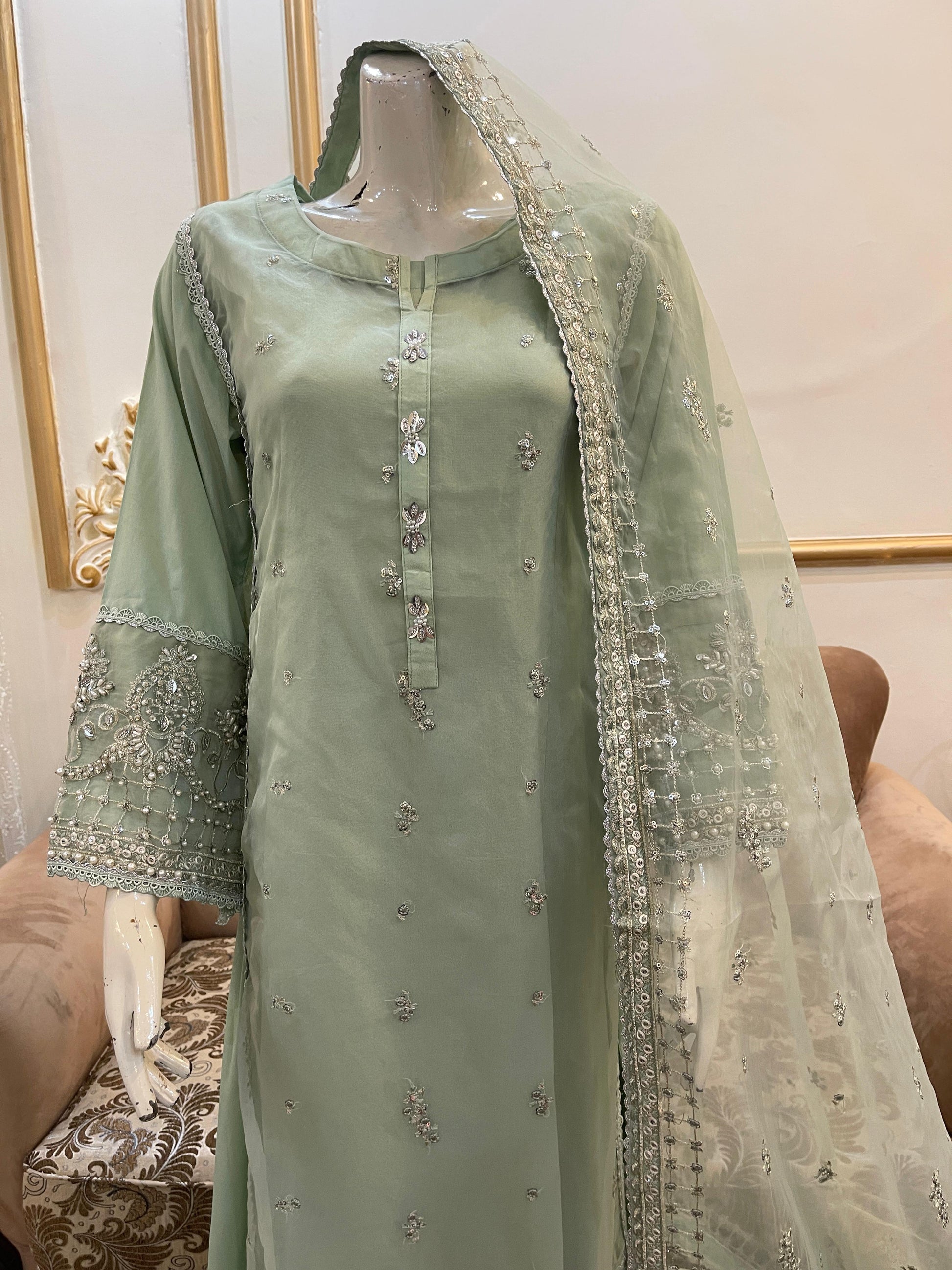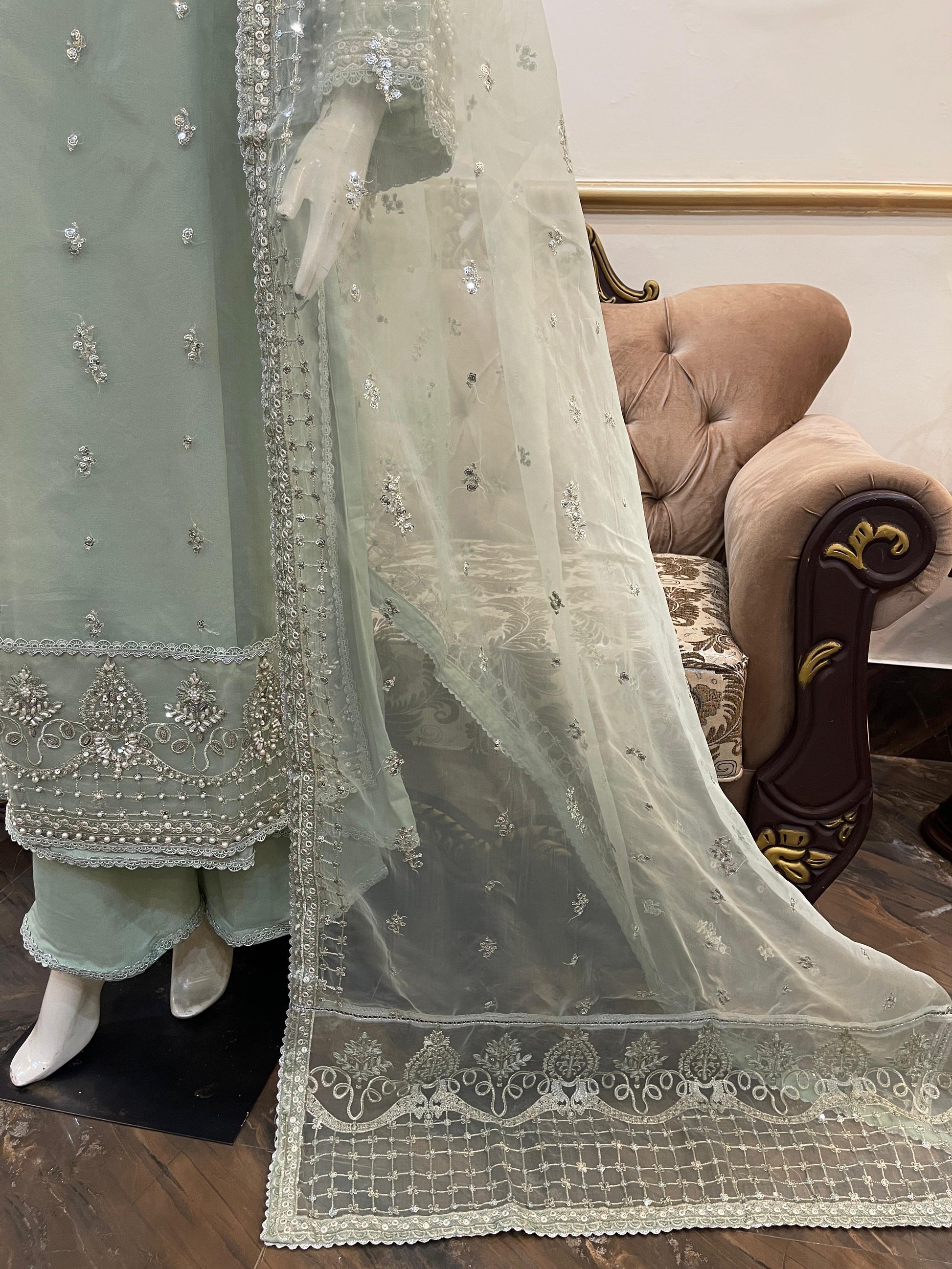 New Beautiful HandWork Embellished Inner With Beautiful Organza Seprate Handwork Neckline And Tusseled Gown Along With Beautiful Embroidered Dupatta In Amazing Pistachio Colour..!!!